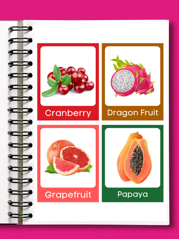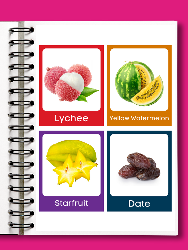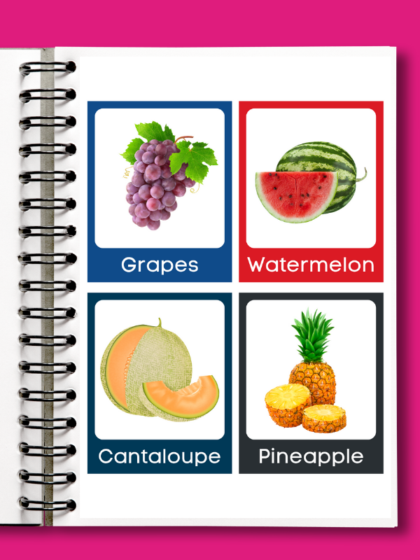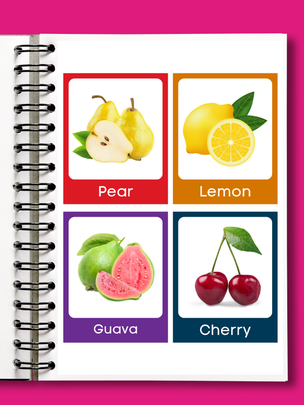 Help your child learn fruit names in a fun and exciting way, while exploring each fruit and building their vocabulary!