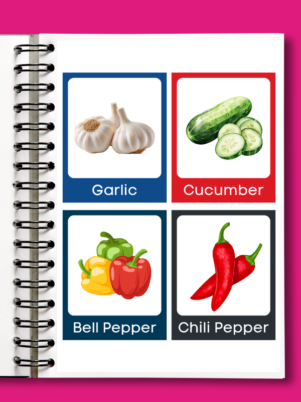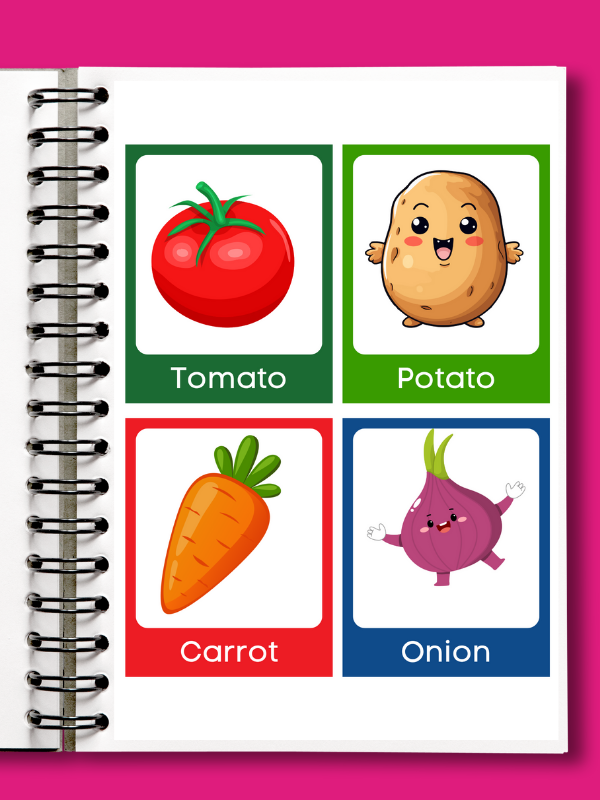 These vegetable flashcards make learning fun and help children explore and memorize vegetable names in a simple and enjoyable way.