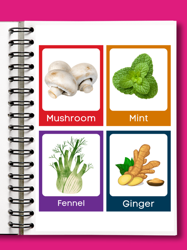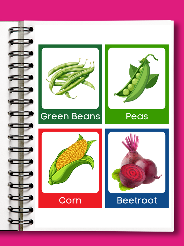 32 high-quality cards with real vegetable images.