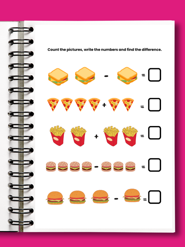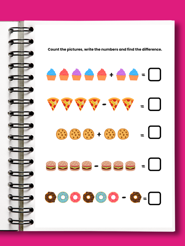 This 35-page math workbook is designed for preschool and early elementary children to build a strong foundation in counting, addition, and subtraction. Every 5 pages feature a different engaging activity, keeping young learners motivated and excited to practice. Activities include counting exercises, simple addition and subtraction problems, and interactive worksheets that make learning fun and effective. Perfect for parents, teachers, and homeschoolers looking to support early math skills in a structured and enjoyable way.