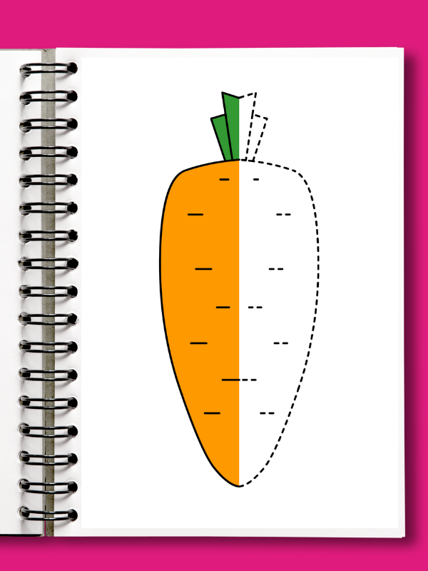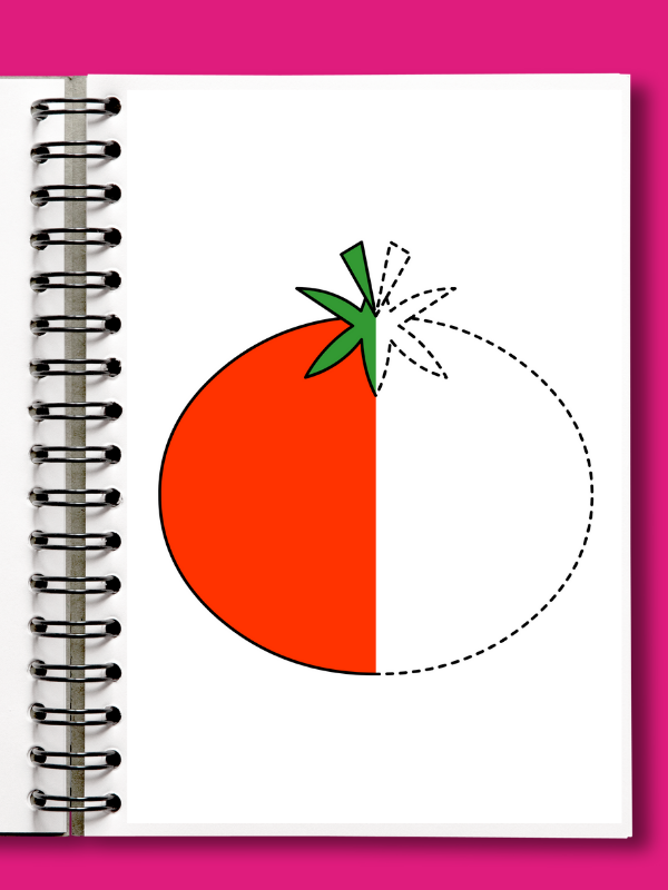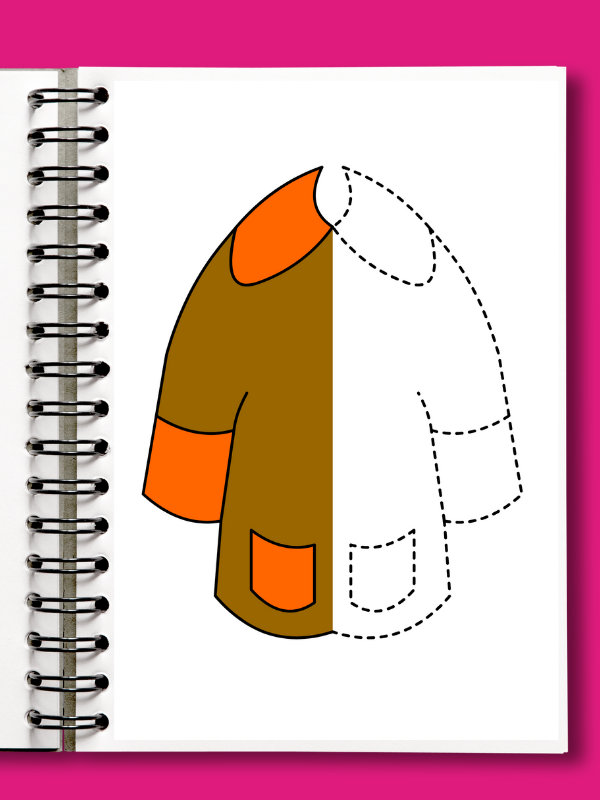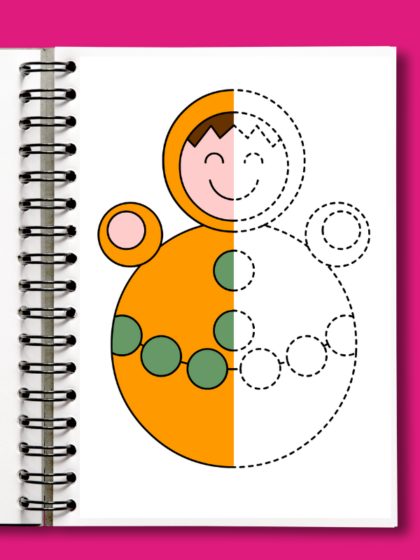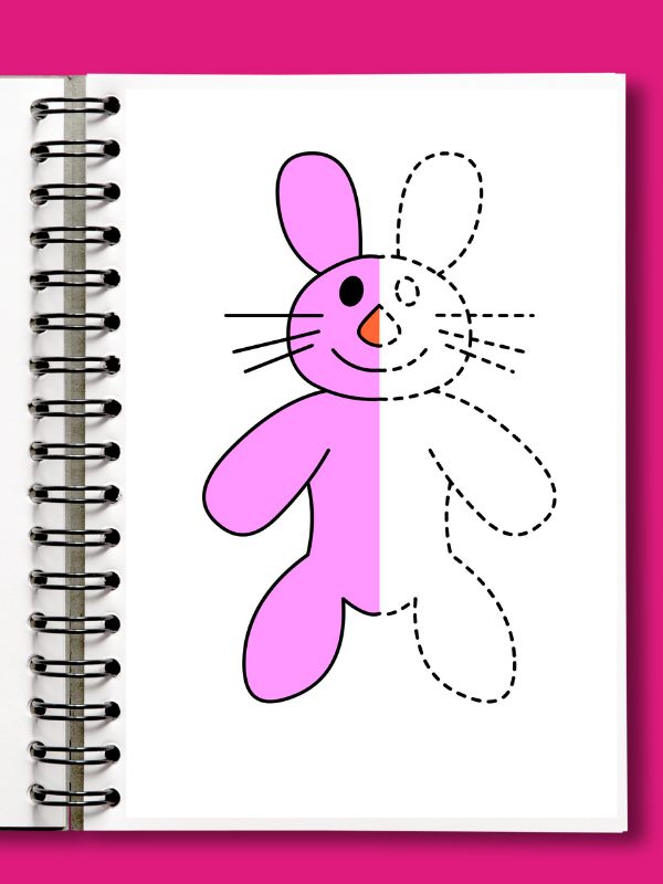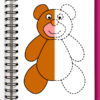Each page includes creative illustrations such as a teddy bear half in color and half in dotted outlines, encouraging kids to complete the picture and color it themselves.